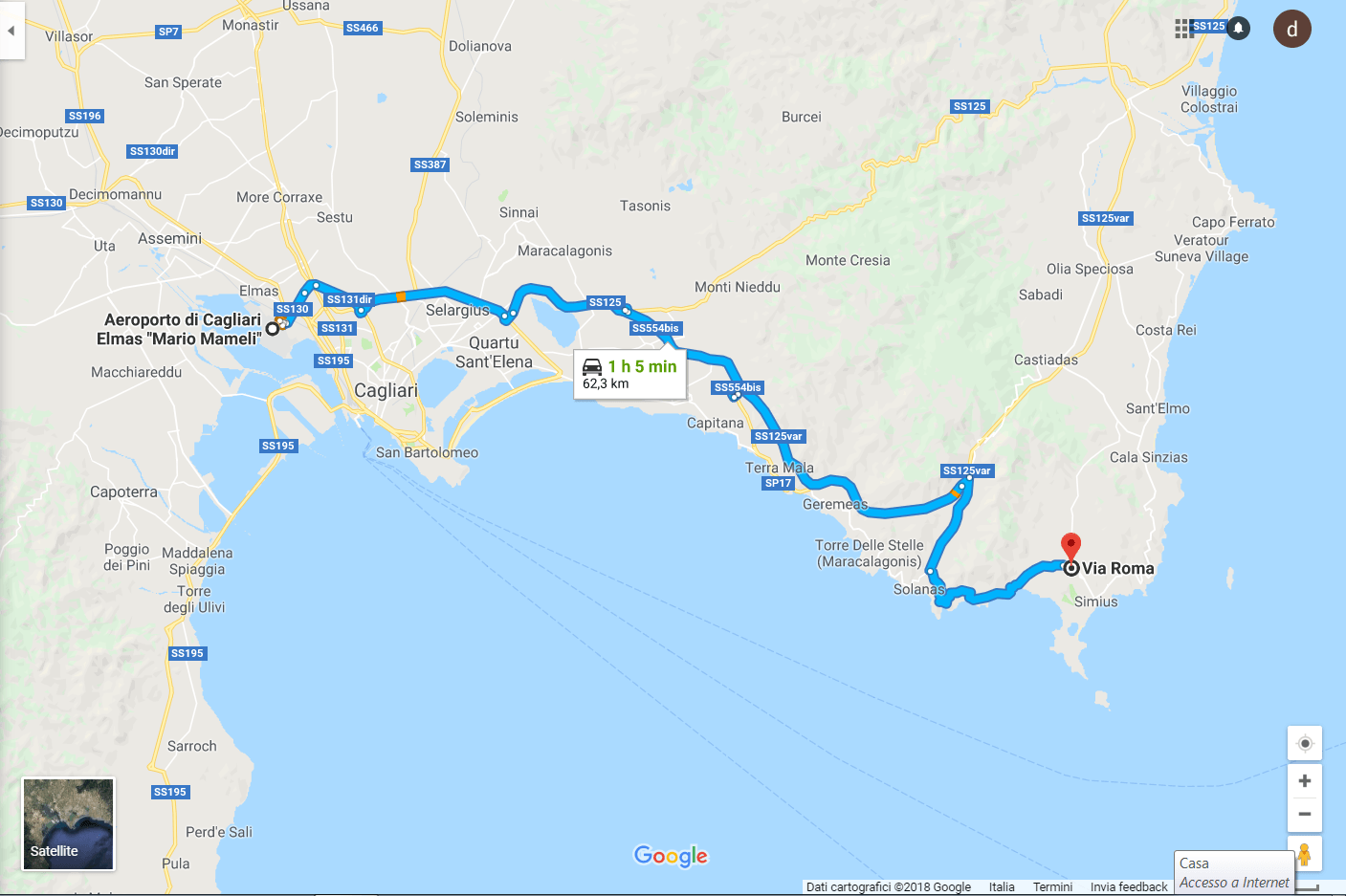 Attraverserai le spiagge di Cagliari ( Poetto) e le località di Flumini/Is Mortorius/Capitana/Geremeas/Torre delle Stelle e infine Solanas. Sei quasi arrivato, manca poco per entrare nel Paese di